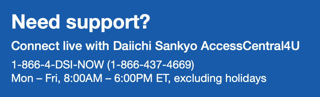 For more information, visit the Daiichi Sankyo AccessCentral4U website to learn more about medication coverage and access support, financial assistance and other helpful resources.